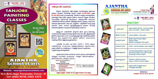 நமது பள்ளியில் ஏட்டு விதமான ஓவியப் பயிற்சிகள் நடத்தப்படுகின்றன அவை :